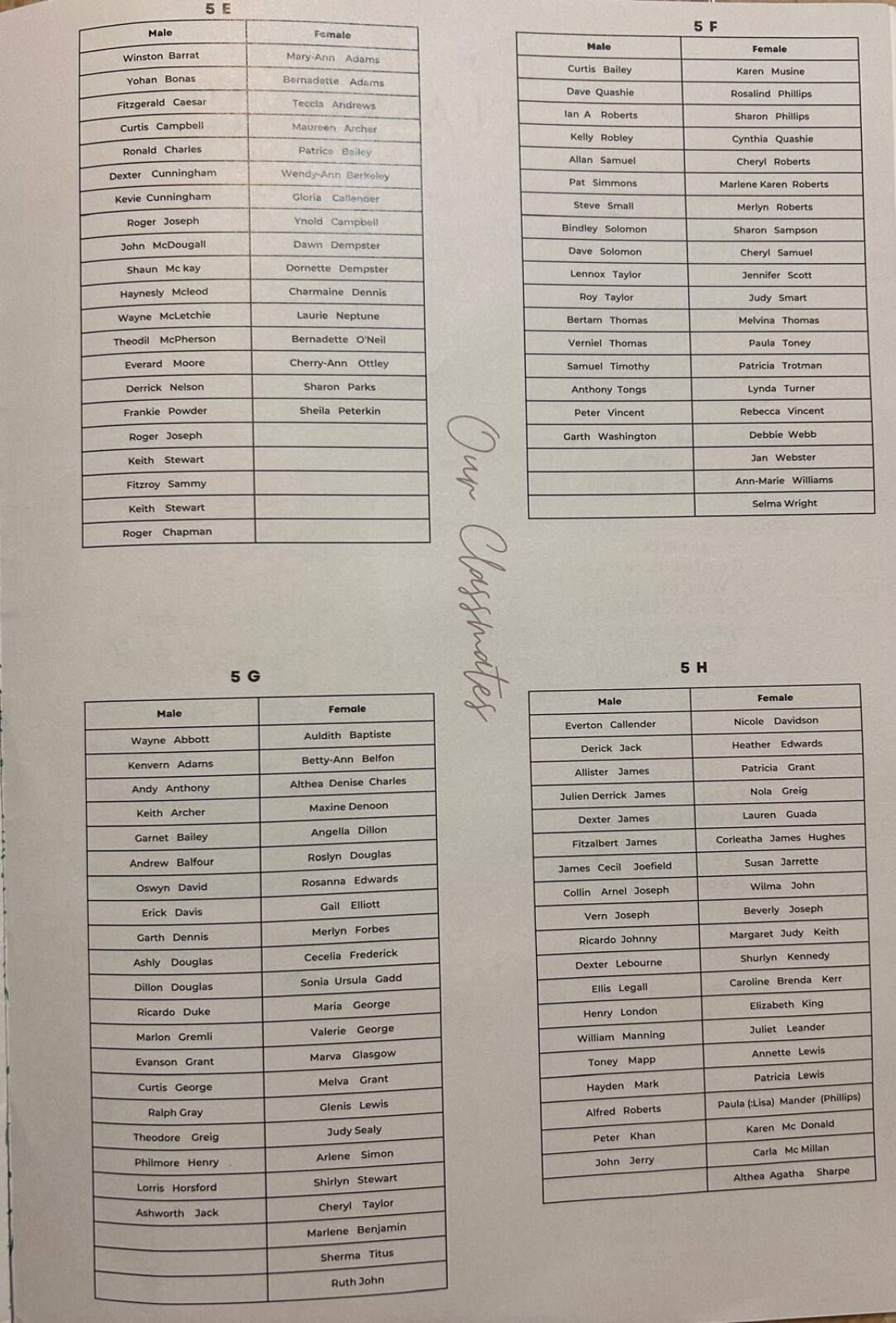 In which 5th Form Class can we find you?